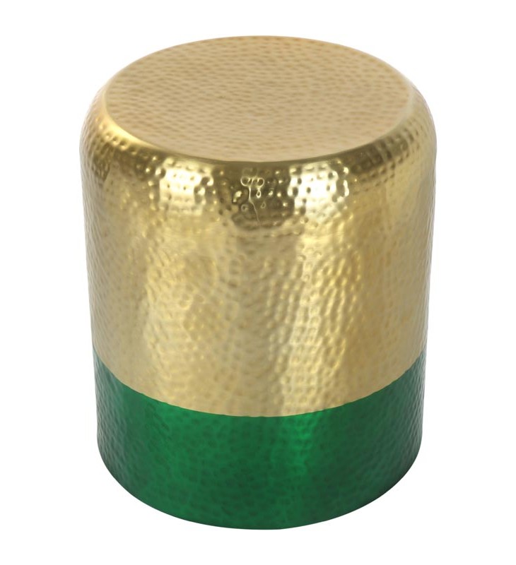 Highlight your furniture collection with this vibrant drum accent table. Hammered steel is finished in luxe gold with a bold green base, and is stunning in any living space. Place one in between two chairs or in multiples in front of your sofa.