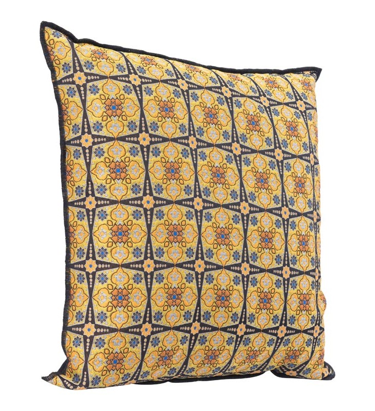 Intstant elegance. This pillow, with its kaleidescope-like pattern in vibrant yellow will add a designer touch to any room. Toss a pair on your sofa or bed to double down on both comfort and beauty.