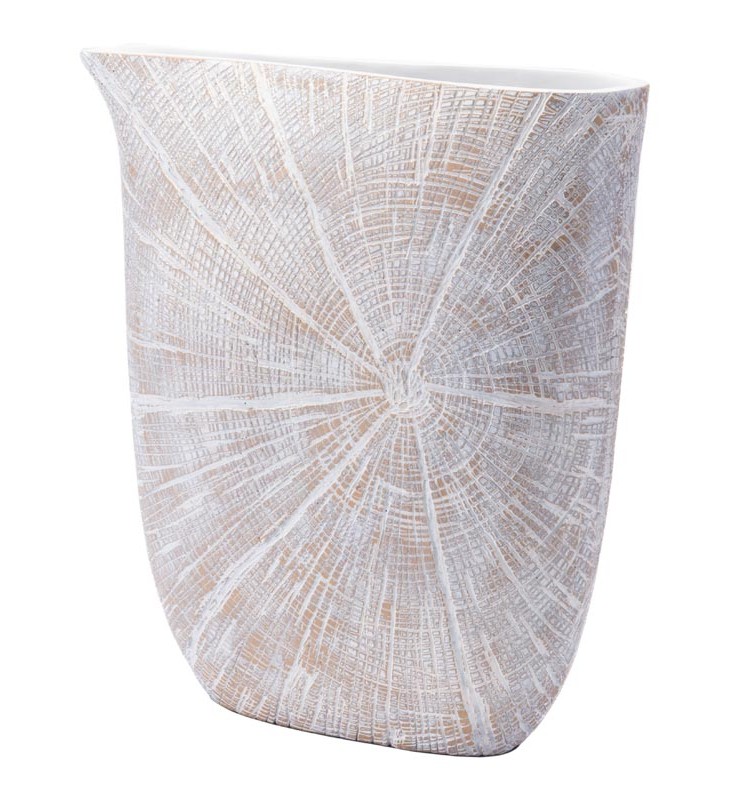Brilliant rays beautifully burst across the surface of our white Jar vase. Made of polyresin with an antique distressed beige finish. Its impactful displayed in a set, but also beautiful placed individually on a shelf or counter.