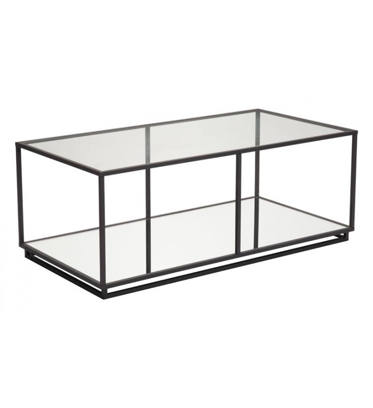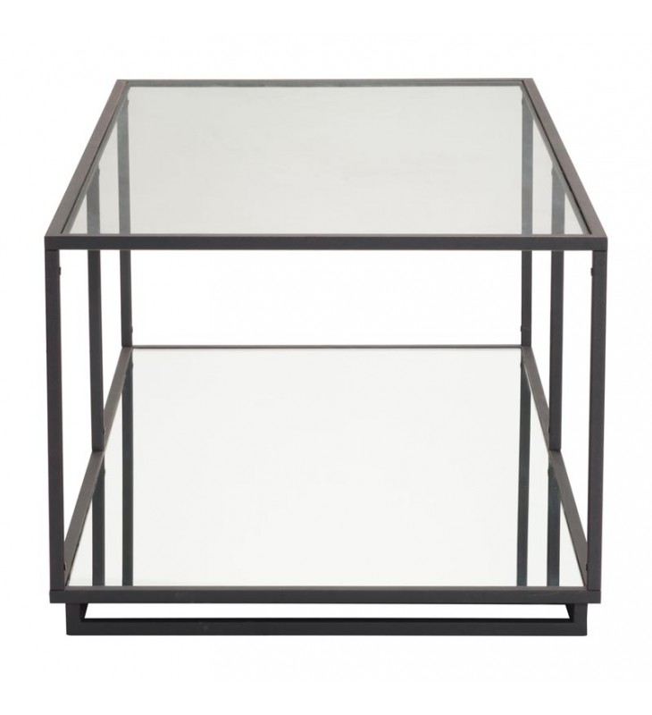 A modern mix of clean lines with a distressed finish make this coffee table perfect in front of any sofa. Slim and architectural, the top and middle surface is clear glass, while the bottom surface is mirrored. Perfect to display decorative objects or store your media accessories. Pair with the Kure console and end tables.