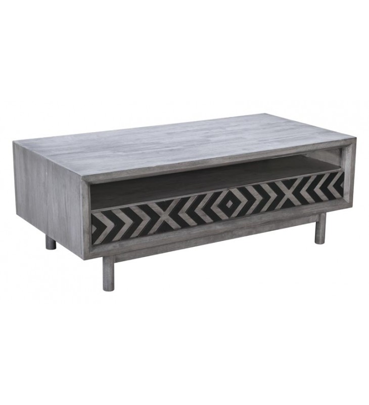 A real stunner! This rectangular coffee table with its chevron detail will be a beautiful and artistic accent in front of your sofa or a pair of chairs. Stash your magazines, remotes and coasters in these sizeable storage drawers with soft touch closures and easy glides.