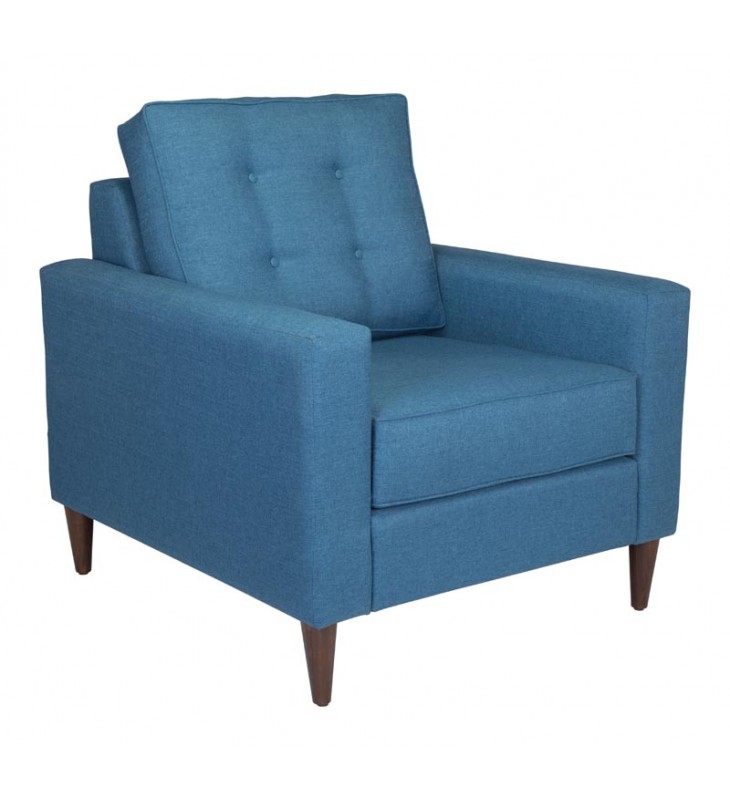 Buttoned up in comfort, this handsome armchair will bring a tailored look to any living room. Squared off with a mid-century vibe, its high tufted back and generous seat cushion will have you lounging for hours. Tapered pencil legs elevate the look. Place a pair with the matching loveseat or sofa, sold separately, to complete your room setting.