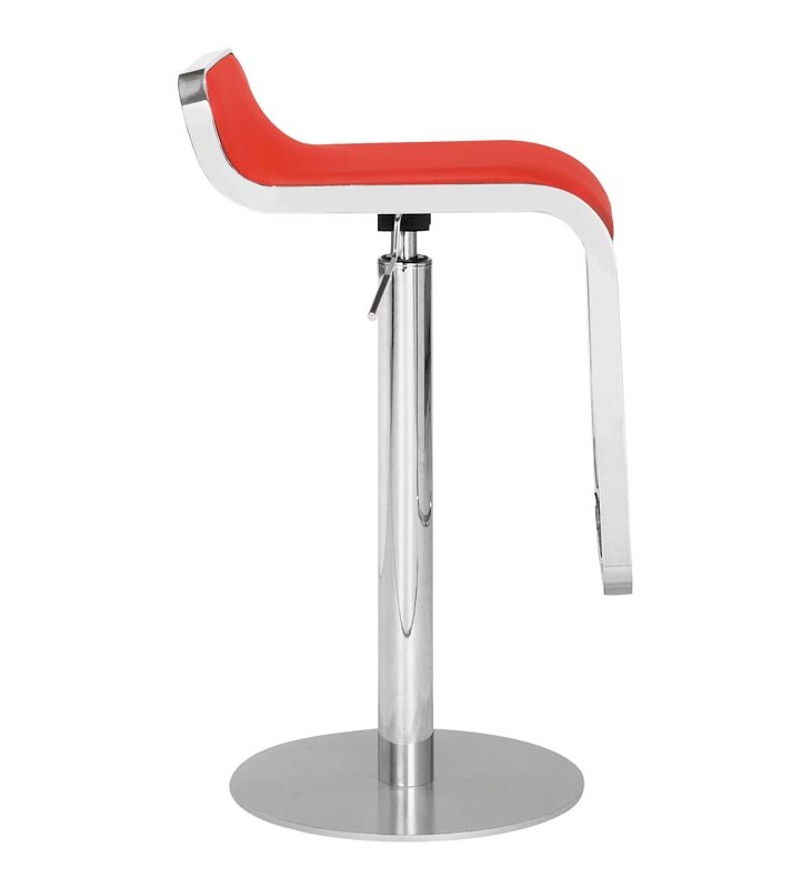 With its slight lip back and flat seat, the Equino is comfortable and stylish. Featuring a washable leatherette seat, chrome plated steel frame, stainless steel base, and adjustable lift from counter to bar.